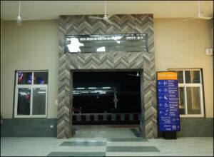 बुकिंग कॉन्कोर्स (10 मीटर x 7 मीटर) अनारक्षित टिकट काउंटर, आपातकालीन काउंटर और