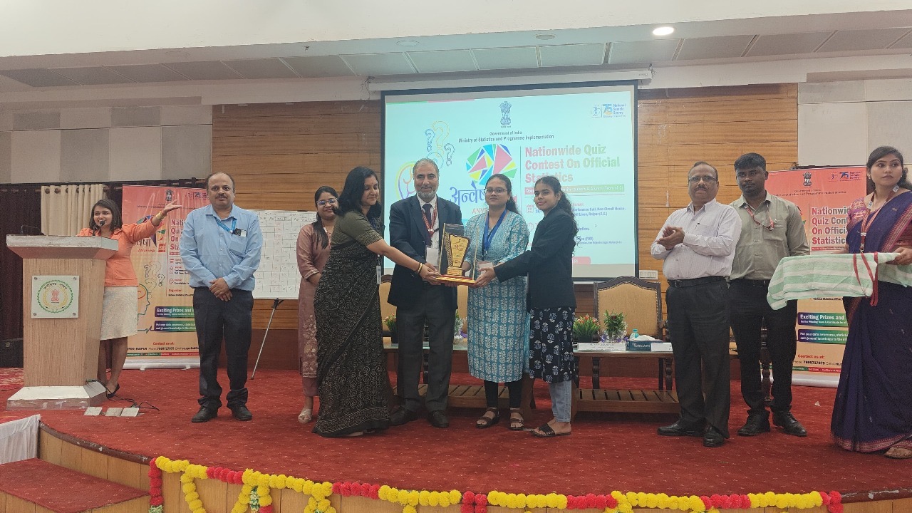 रायपुर। भारत सरकार के सांख्यिकी एवं कार्यक्रम कार्यान्वयन मंत्रालय के अंतर्गत राष्ट्रीय सांख्यिकी कार्यालय, रायपुर द्वारा राष्ट्रीय प्रतिदर्श सर्वेक्षण की 75वीं वर्षगांठ के अवसर पर शुक्रवार को न्यू सर्किट हाउस, रायपुर के कॉन्फ्रेंस हॉल में “राष्ट्रव्यापी प्रश्नोत्तरी प्रतियोगिता – अन्वेषा 2.0” का आयोजन किया गया। इस प्रतियोगिता में छत्तीसगढ़ के विभिन्न महाविद्यालयों और विश्वविद्यालयों के छात्रों व पूर्व छात्रों ने उत्साहपूर्वक भाग लिया।