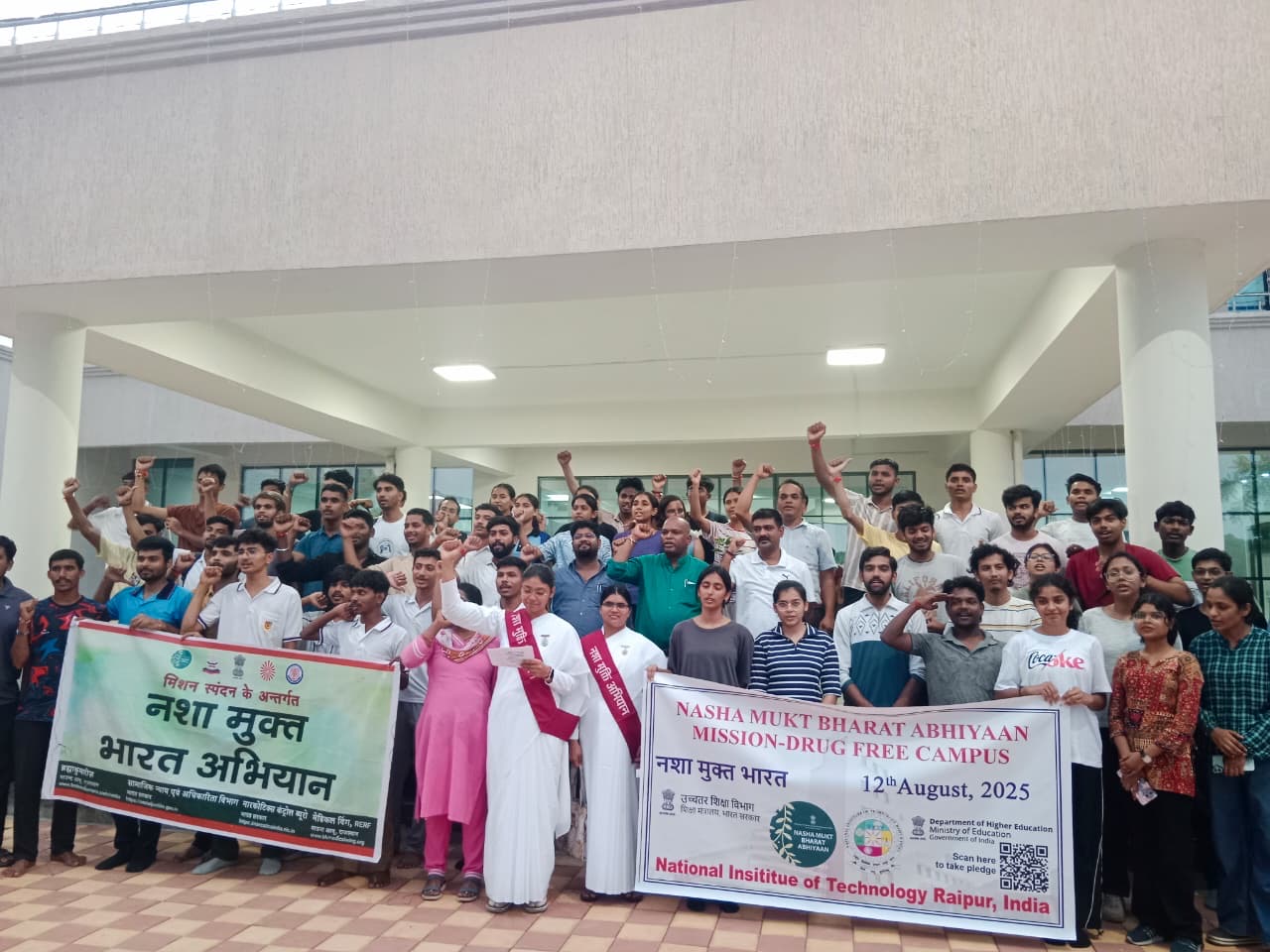 रायपुर। राष्ट्रीय प्रौद्योगिकी संस्थान (एनआईटी) रायपुर के एनसीसी क्लब द्वारा नशा मुक्त भारत अभियान 2025 की 5वीं वर्षगांठ के उपलक्ष्य में न्यू स्पोर्ट्स कॉम्प्लेक्स में एक जागरूकता सत्र का सफल आयोजन किया गया। इस कार्यक्रम का मुख्य उद्देश्य छात्रों, शिक्षकों एवं कर्मचारियों को नशीली दवाओं के दुरुपयोग के हानिकारक प्रभावों के प्रति जागरूक करना तथा एक स्वस्थ और व्यसनमुक्त जीवनशैली को बढ़ावा देना था।