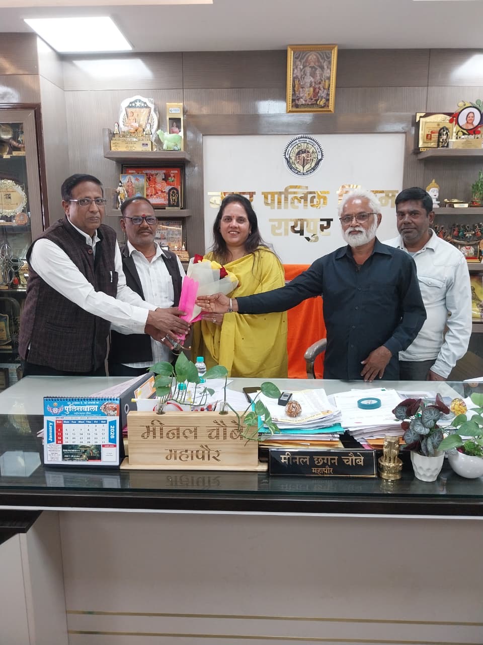 रायपुर- राजधानी शहर रायपुर में ऑक्सीजोन का निर्माण किये जाने लगभग 8 वर्ष पूर्व खालसा स्कूल के सामने से हटाए गए प्रभावित 69 दुकानदारों को क्रिस्टल आर्केड के सामने शीघ्र व्यवस्थापन दिए जाने का मार्ग प्रशस्त हो गया है. महापौर श्रीमती मीनल चौबे की अध्यक्षता में एमआईसी ने इसे लेकर संकल्प पारित किया है, जिससे प्रसन्न होकर प्रभावित दुकानदारों ने नगर निगम मुख्यालय भवन पहुंचकर महापौर श्रीमती मीनल चौबे से मिलकर उन्हें बुके प्रदत्त करते हुए हार्दिक धन्यवाद दिया. महापौर से मिलने वालों में प्रभावित दुकानदार श्री उमेश नामदेव, श्री परेश चौहान सहित नगर निगम रायपुर के पूर्व पार्षद श्री दिलीप किरण सारथी, वरिष्ठ पत्रकार श्री अनिरुद्ध दुबे की महापौर कक्ष में उपस्थिति रही.